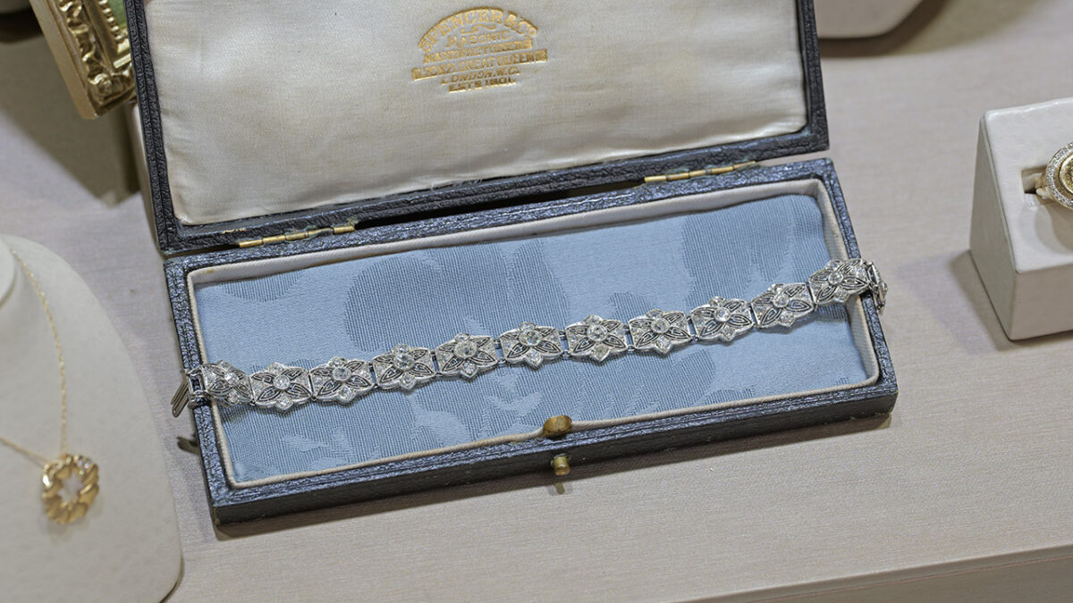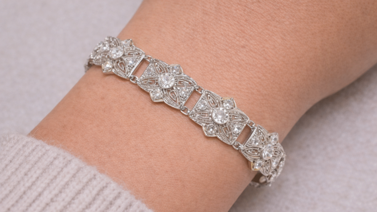 An exquisite Art Deco bracelet crafted in platinum and set with old mine-cut diamonds, showcasing the refined geometry and timeless elegance of the era.