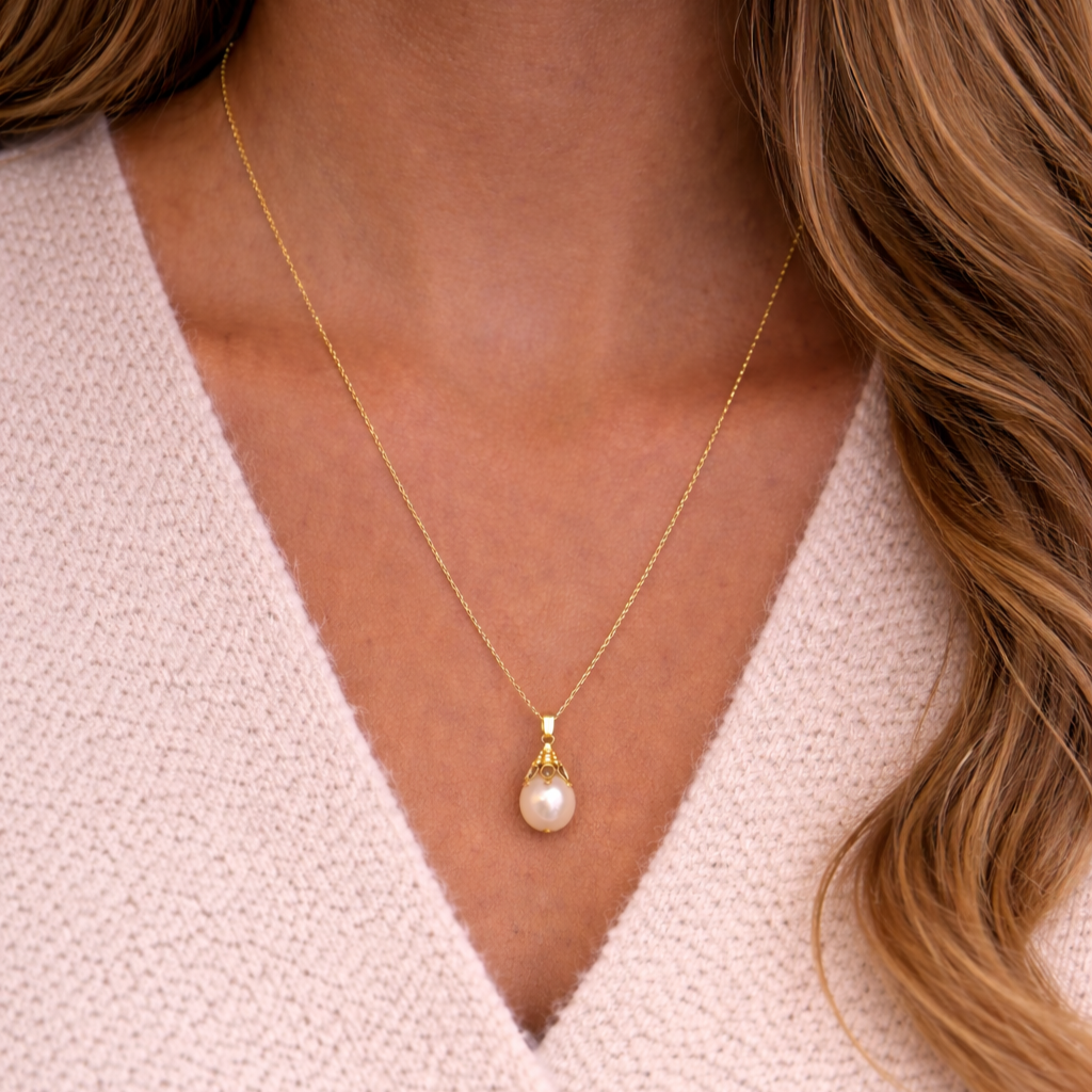 A graceful pendant featuring a luminous baroque pearl, designed with understated elegance.