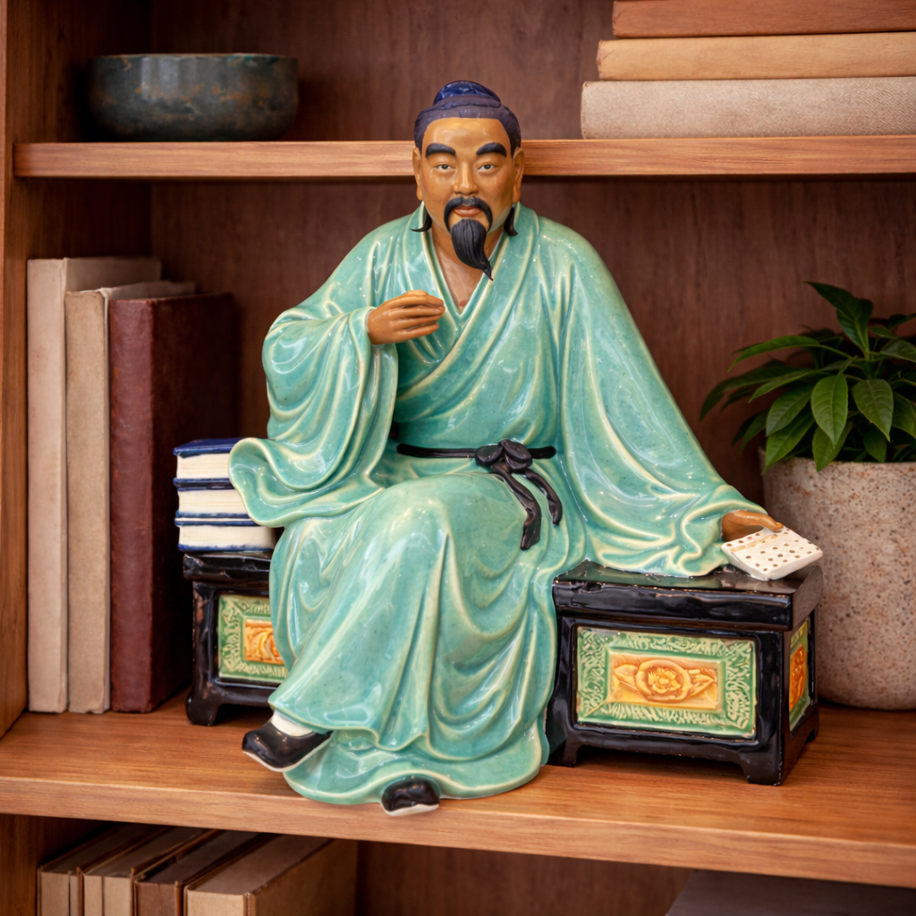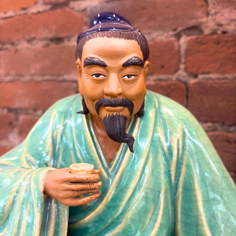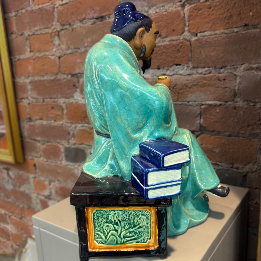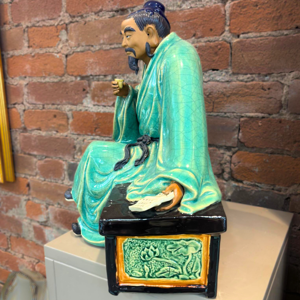 A traditional Chinese Shiwan ceramic “Mudman” figure, part of a long-standing sculptural tradition dating back to the Tang Dynasty. Known for expressive facial detail and textured glazing, Shiwan figures were often created to depict scholars, elders, and folkloric characters, bringing personality and storytelling into decorative art.
