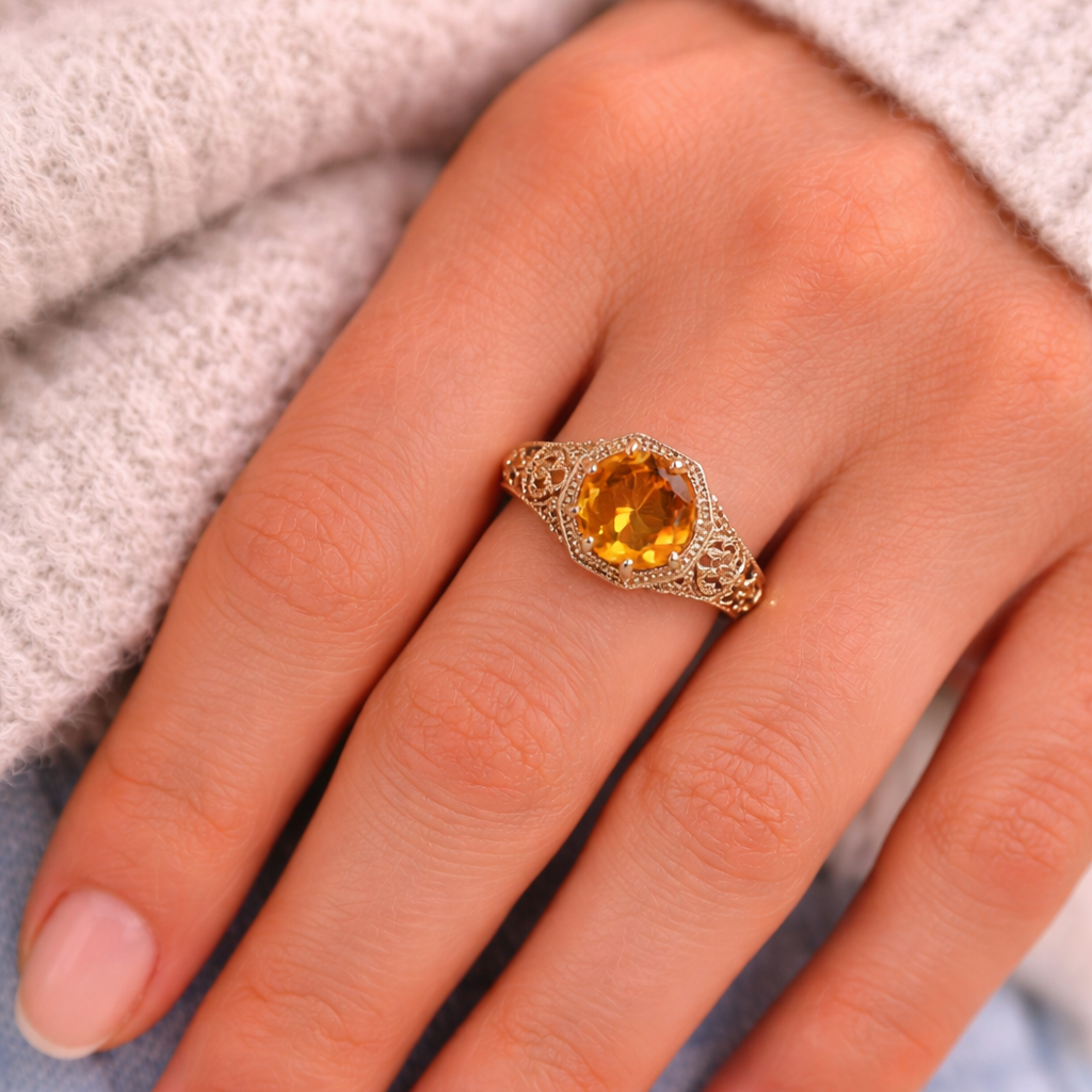 • Center Gemstone: Citrine (Approx. 1.6 carats)