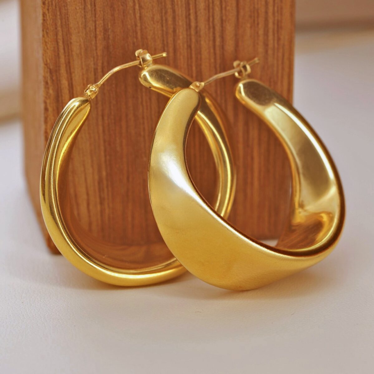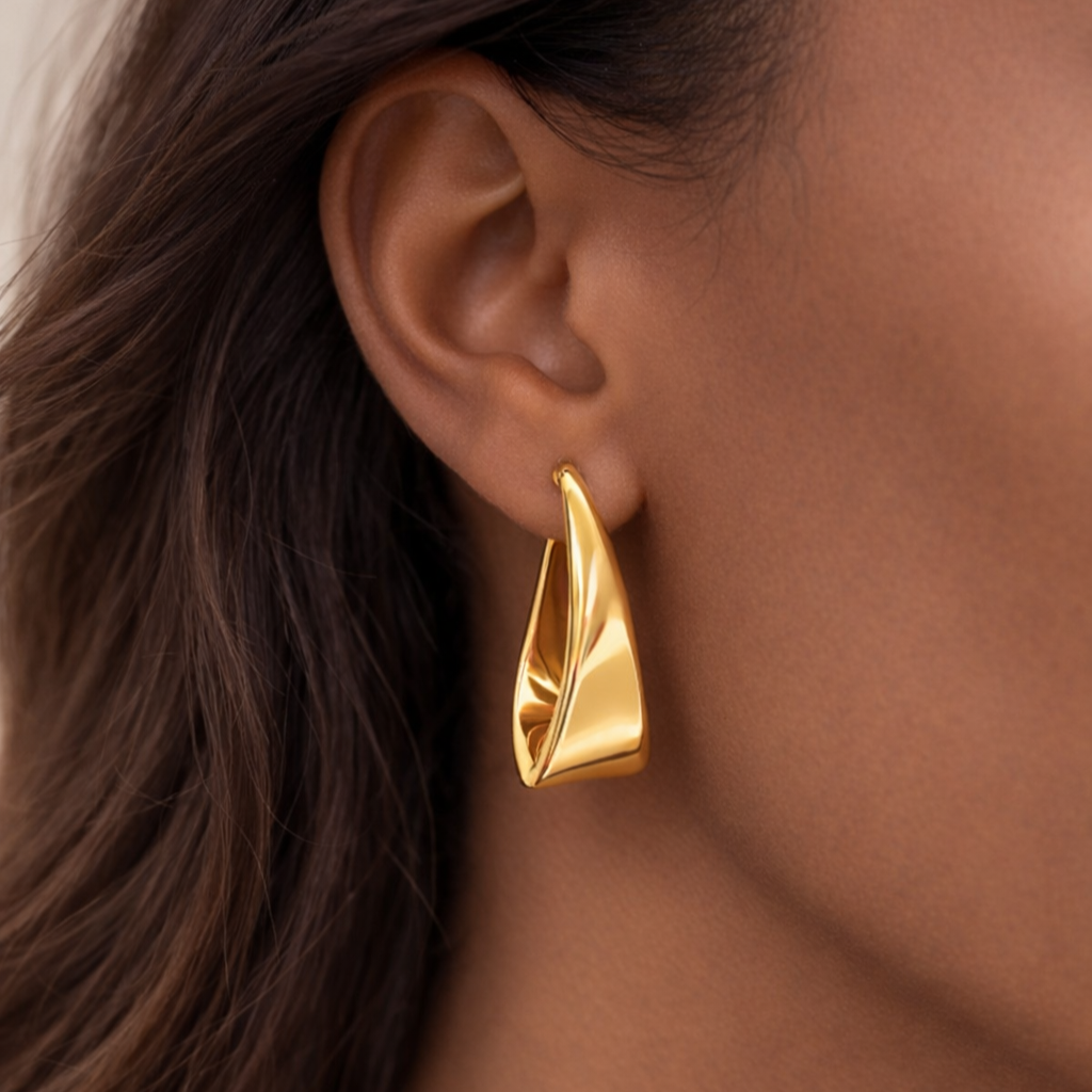 Beautifully crafted large twisted hoops in rich yellow gold, offering a bold, polished look with modern sophistication.