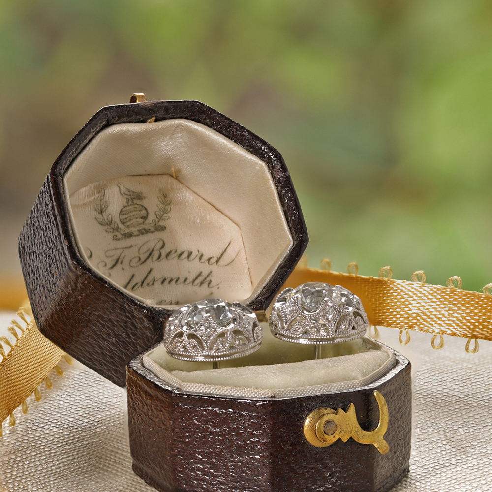 Classic and elegant platinum diamond stud earrings paired with yellow gold backs for secure, comfortable wear.