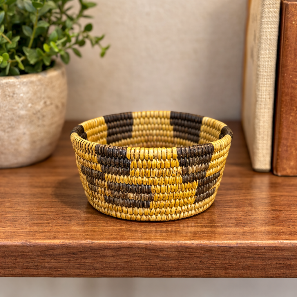 Hand Woven Basket with Checkered Pattern