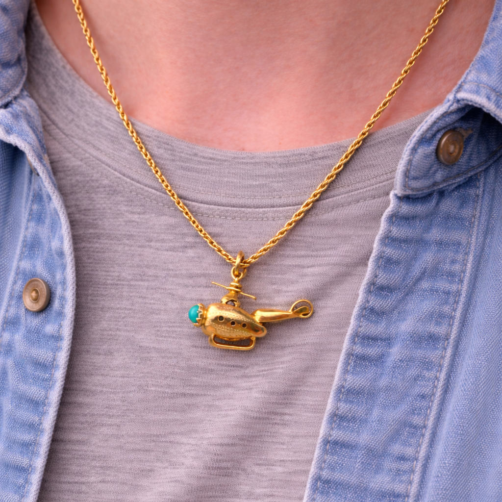 A little charm with big personality. This playful 18K yellow gold helicopter charm features a bright turquoise detail and a propeller that actually turns—an eye-catching conversation piece with irresistible movement and whimsy.