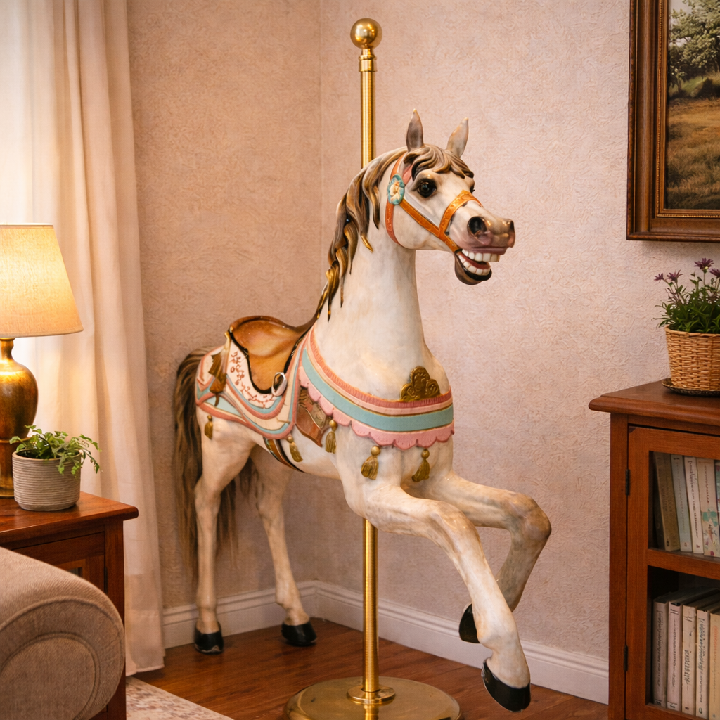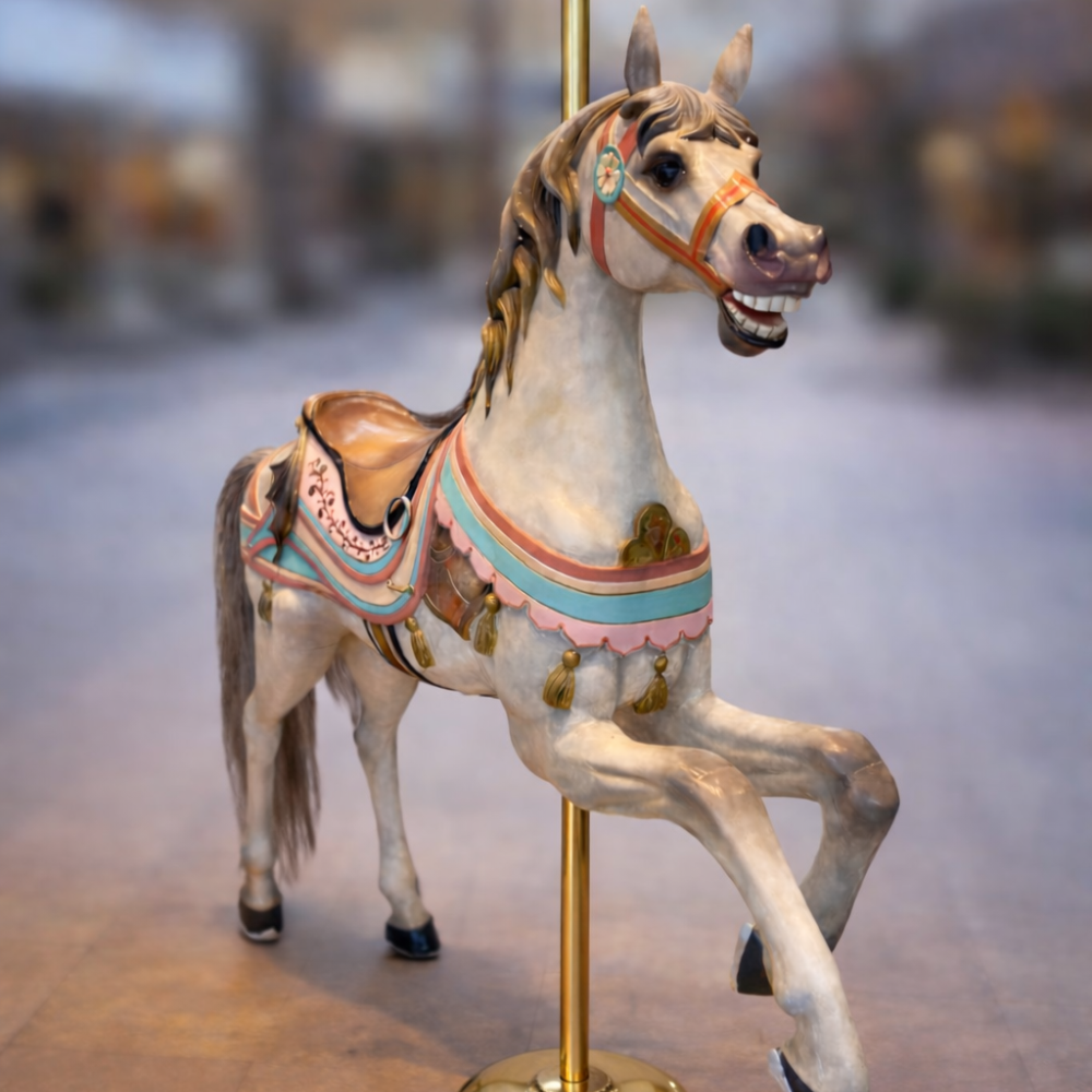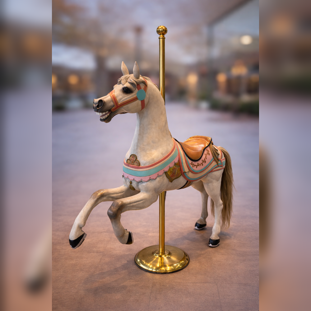 A beautifully carved early 20th-century carousel horse attributed to Edward Joy Morris II of Pennsylvania, dating to circa 1901–1902. Rich in character and craftsmanship, this piece captures the elegance and romance of the golden age of American carousels.