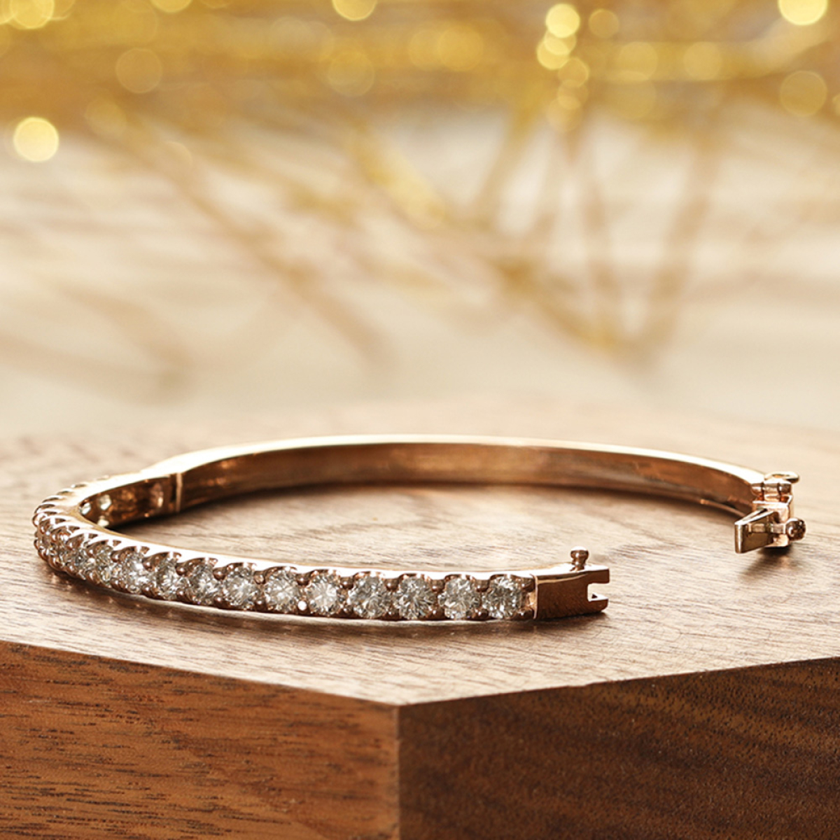 A graceful rose gold bangle set with brilliant diamonds in a timeless design that balances warmth and sparkle.